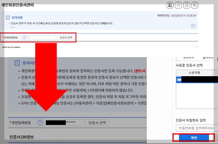 🧾 1단계: 개인회원 인증서 등록 (필수)