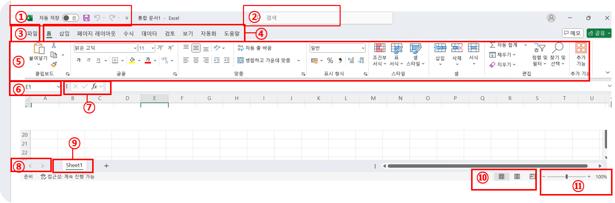 엑셀 화면 구성은 단순히 메뉴의 나열이 아니라, 작업 흐름을 효율적으로 설계한 구조입니다. 각 구성요소의 역할을 이해하고 자주 사용하는 기능을 빠른 실행 도구 모음에 등록해두면 업무 효율이 크게 향상됩니다.