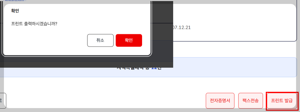 조회된 내용이 맞다면 ‘출력하기’ 또는 ‘PDF 저장’을 선택합니다.
