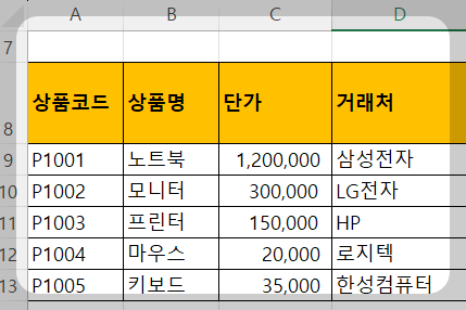 - 시트2: 매출 관리 (상품코드 → 상품명/단가/거래처)